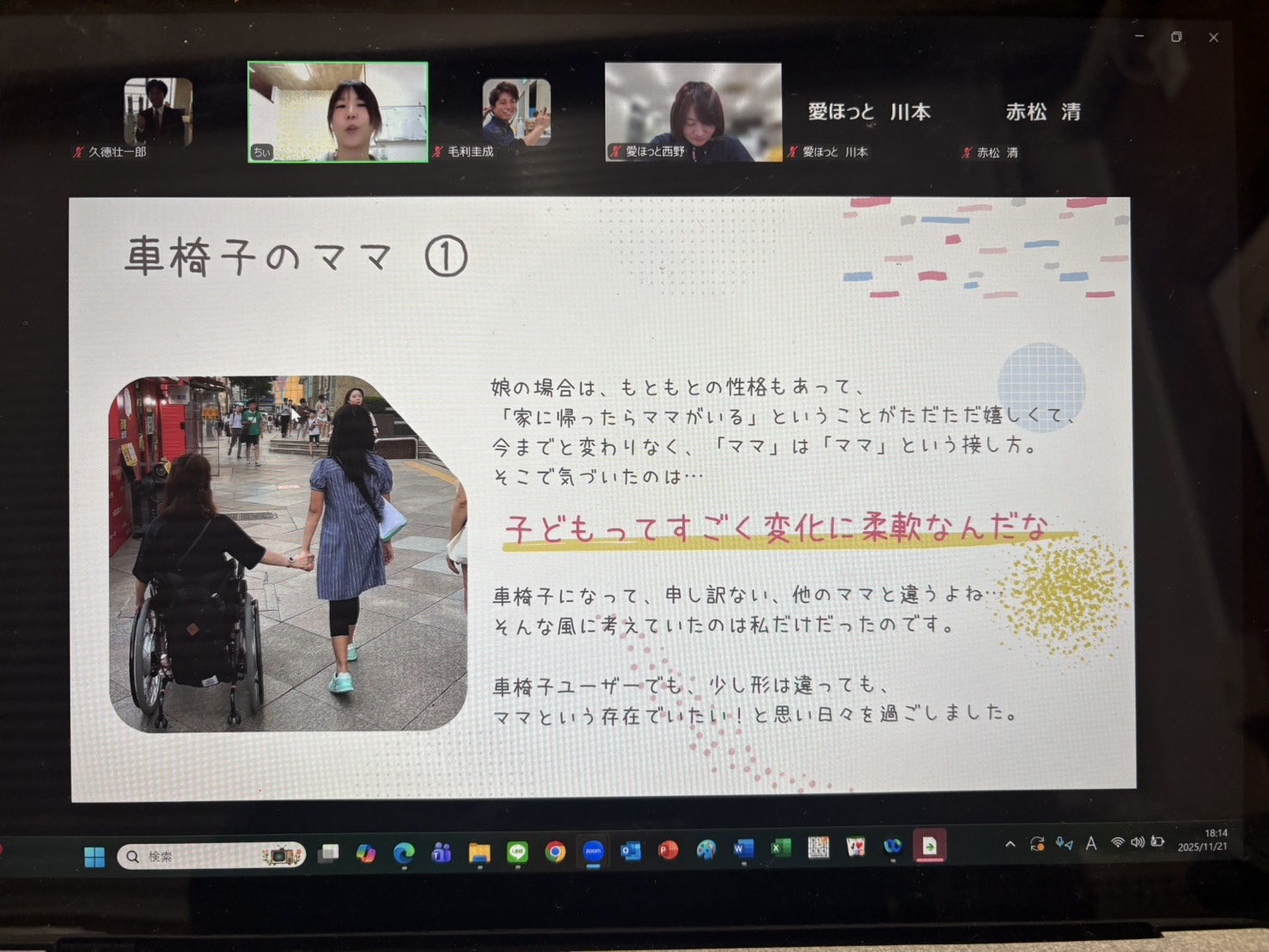 11月21日(金)、シェアアクト主催の勉強会にて、Instagramで「ちぃのバリアフリー日記」を発信されている【ちぃ】さんを講師にお招きし、オンラインでご講演いただきました。