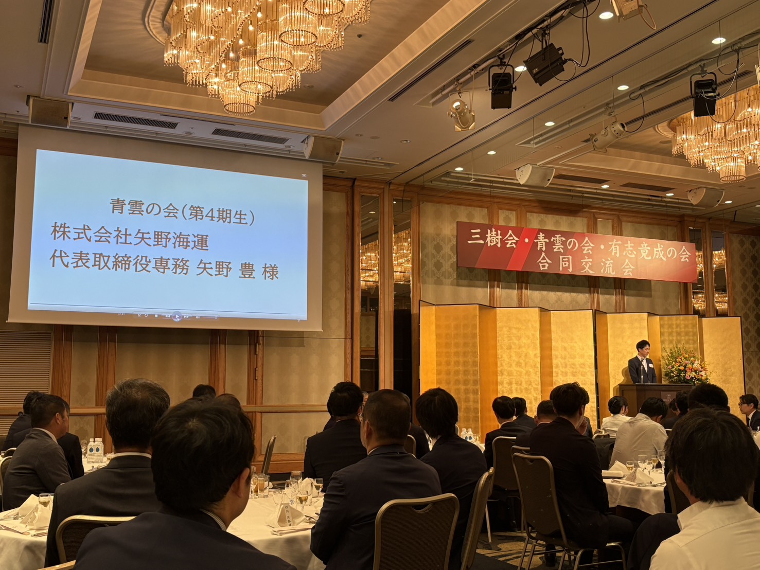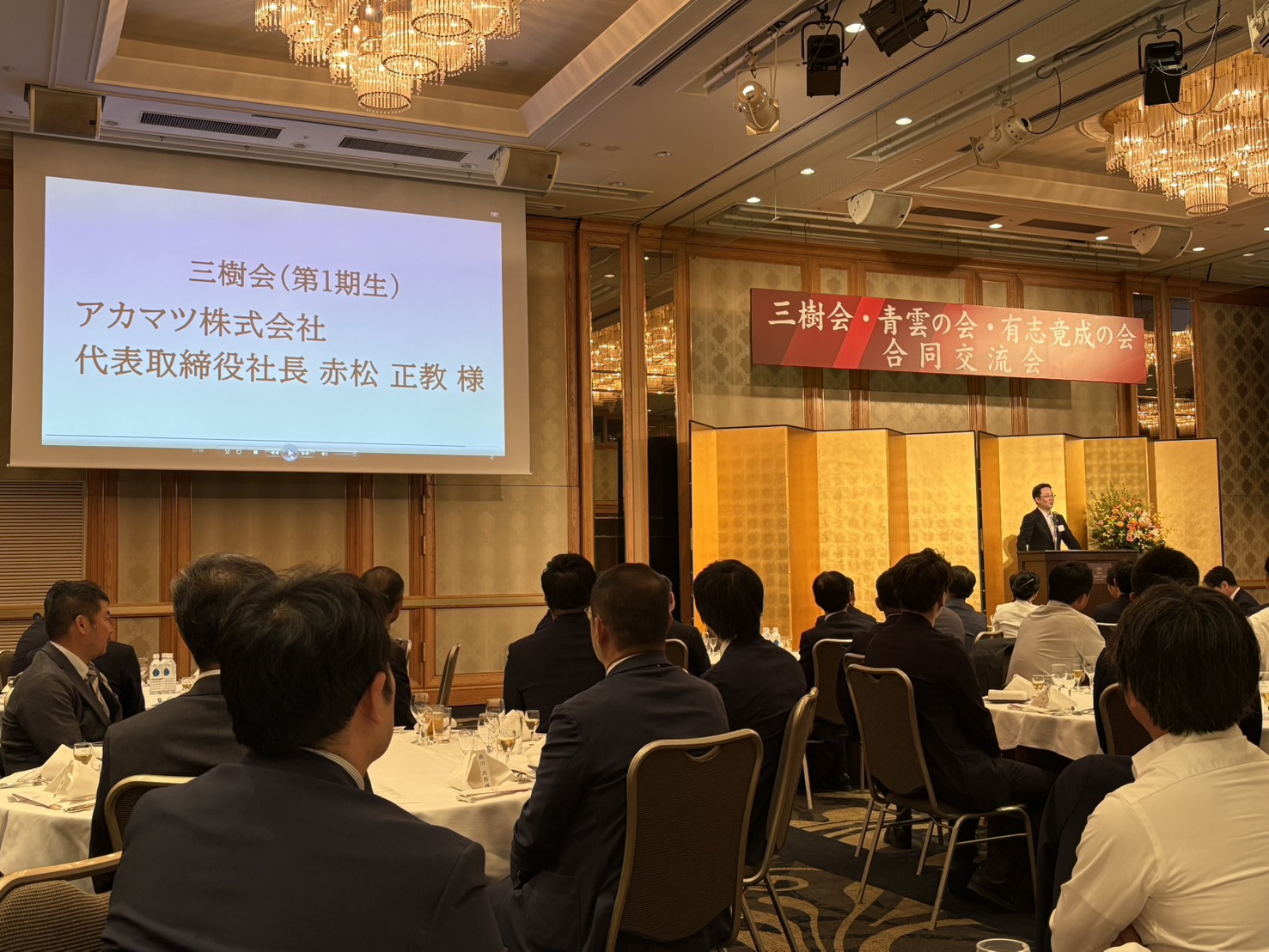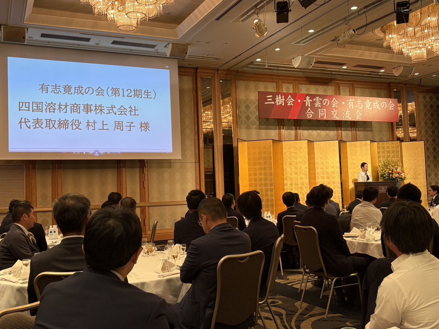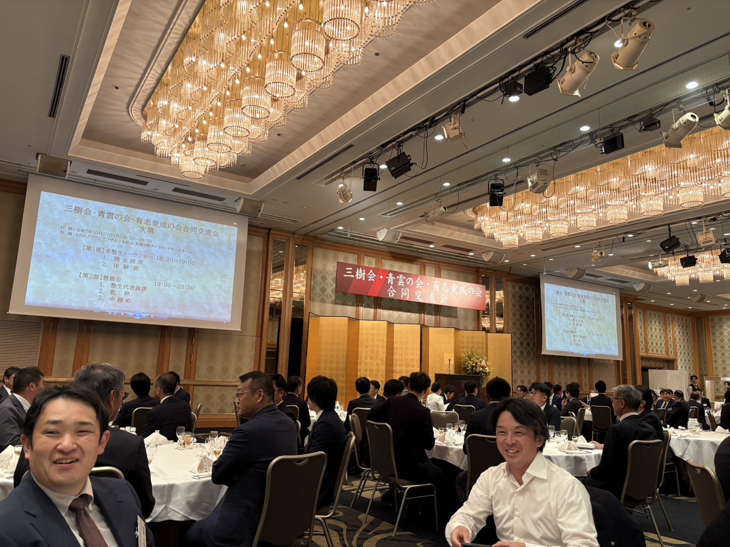 10月27日(月)、松山市のANAクラウンプラザホテルにて開催された、愛媛銀行主催の【三樹会・青雲の会・有志竟成の会 合同交流会】に出席。