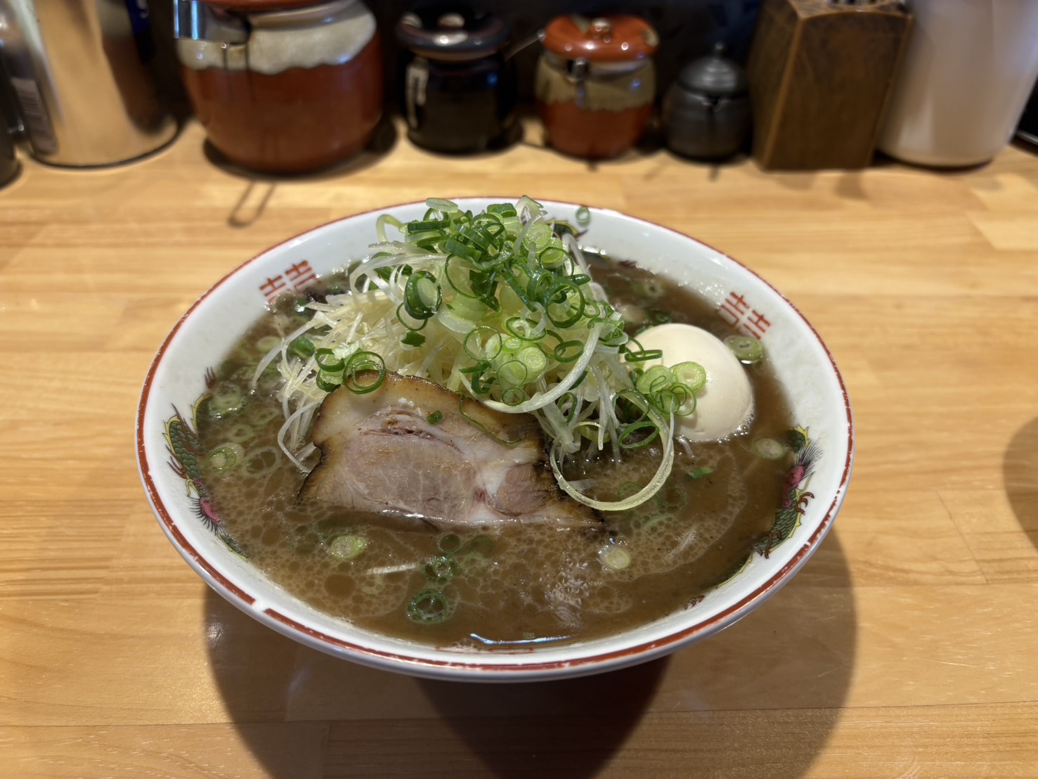 僕が食べたのは、黒ラーメン!見た目からしてインパクト大の一杯!スープはしっかりとしたコクがありつつも、後味は意外とあっさりしていて、ついついレンゲが止まりませんでした。替え玉は1杯無料ということで、替え玉も決行!ついにスープを全部飲み干してしまいました。焦がし系の香ばしい風味がクセになり、ダイエット中にもかかわらず黒ラーメンならではの独特な深みを楽しめました。
