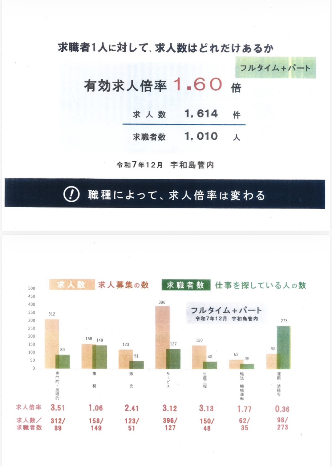 まず印象的だったのは、宇和島管内の有効求人倍率が1.60倍であるという現状。