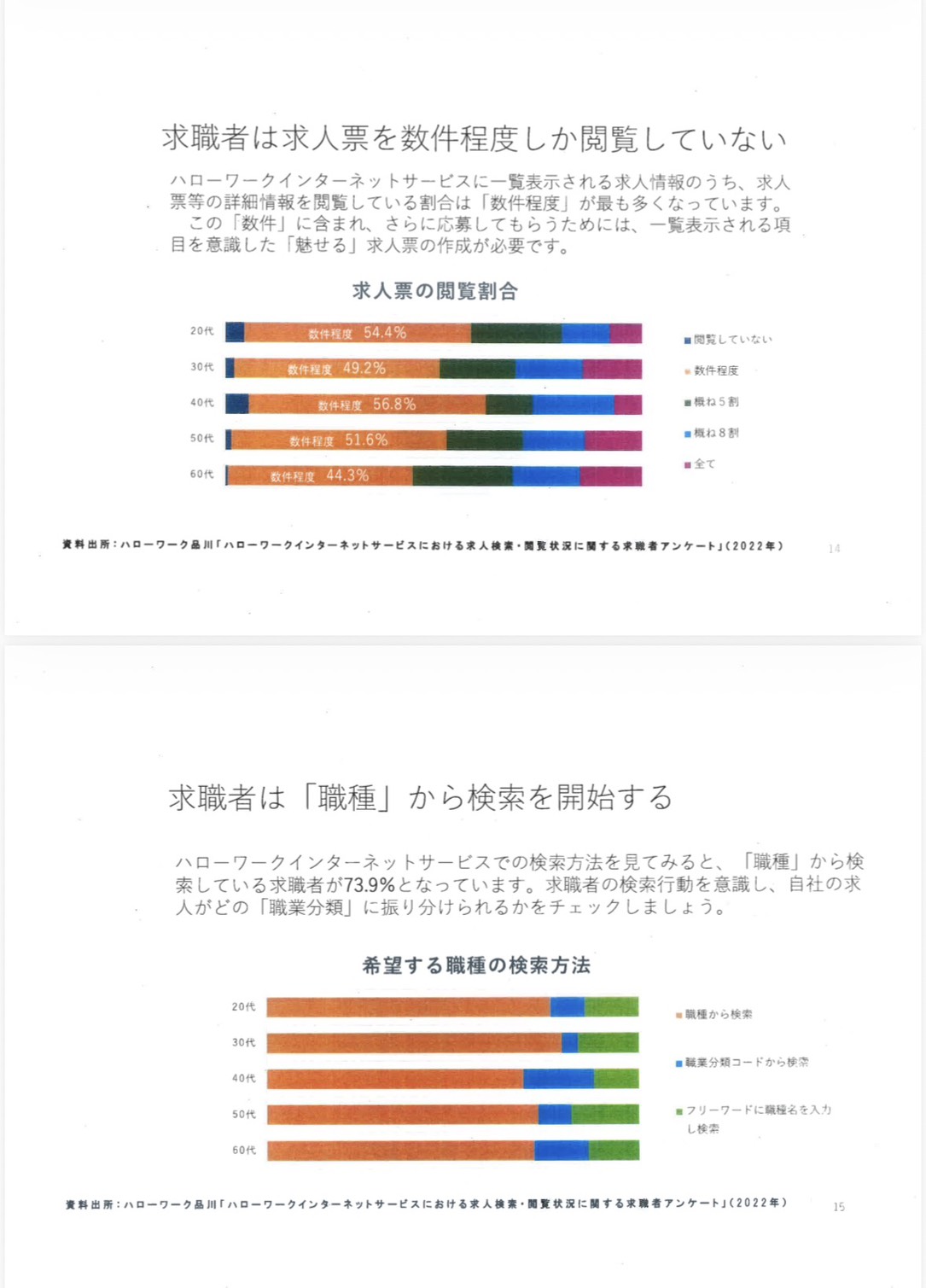 今回の学びを活かし、仕事内容や働く環境をより具体的に伝え、求職者にとって分かりやすく魅力ある求人づくりに取り組んでいきたいと思います。