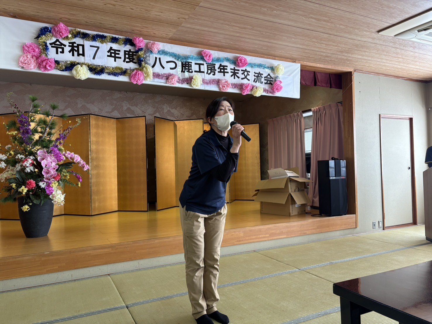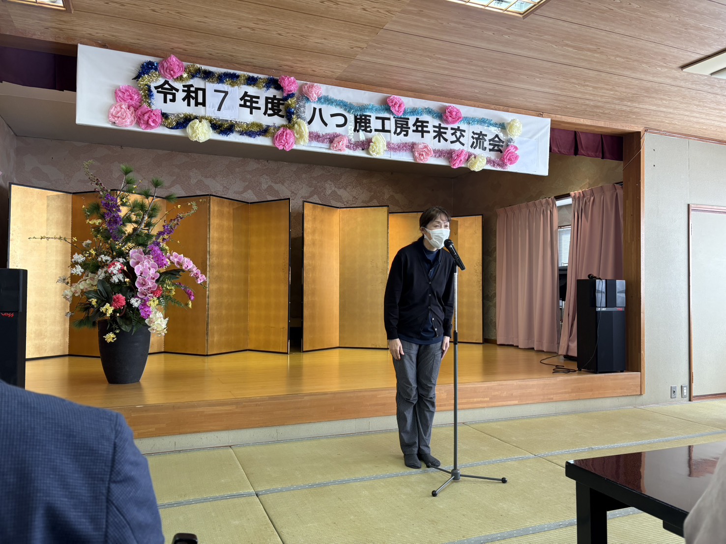 歓談の時間には、新たに八つ鹿工房を利用されることになった皆さんからのご挨拶や、新しく仲間に加わった職員の紹介もあり、それぞれの言葉に温かな拍手が送られました。「これからよろしくお願いします」という気持ちが、会場全体で共有できたように感じます。