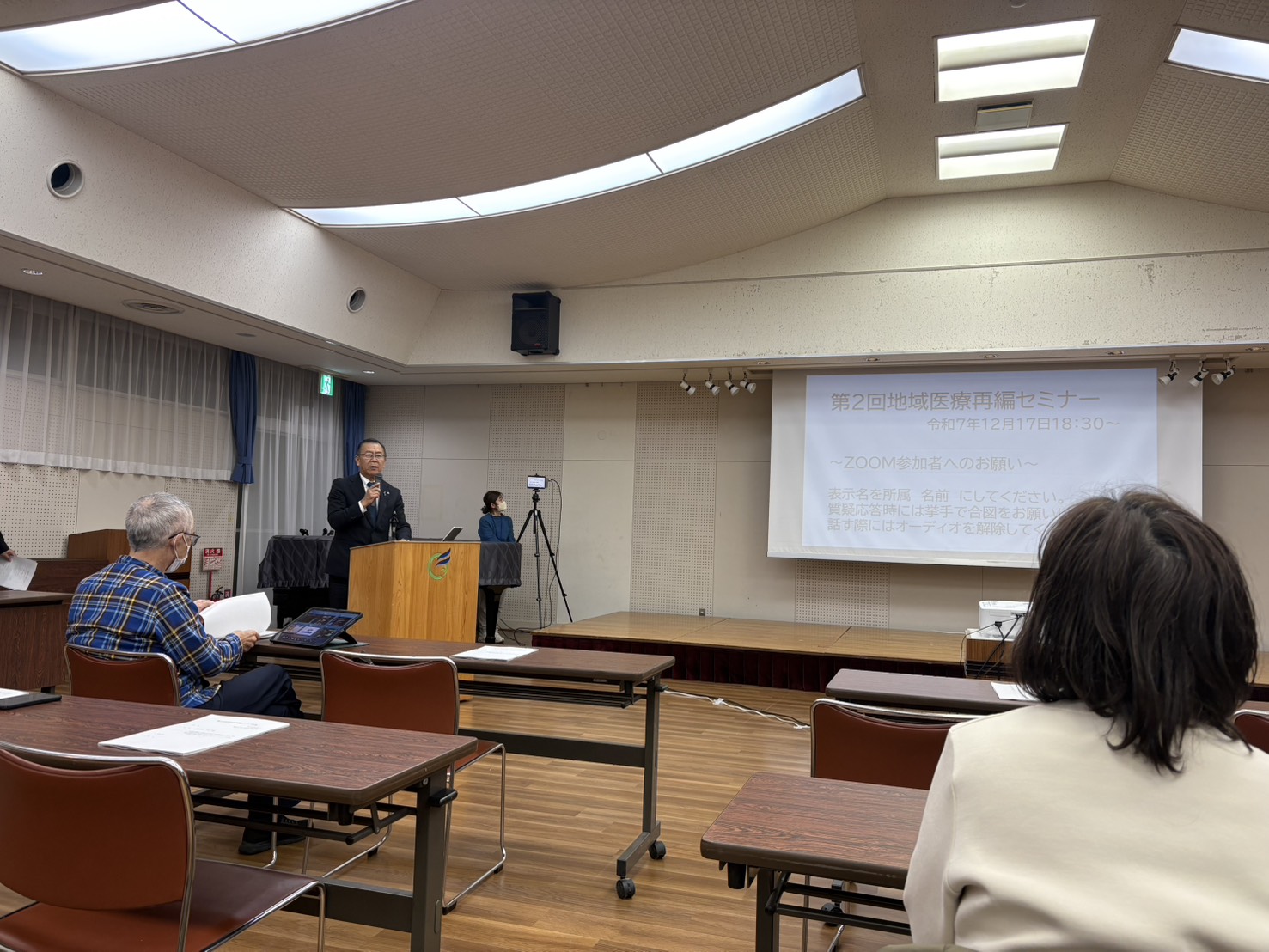 本セミナーは、人口減少や高齢化が急速に進む中山間地域において、これからの地域医療をどのように守り、再編していくのかを考えることを目的に開催されたものです。